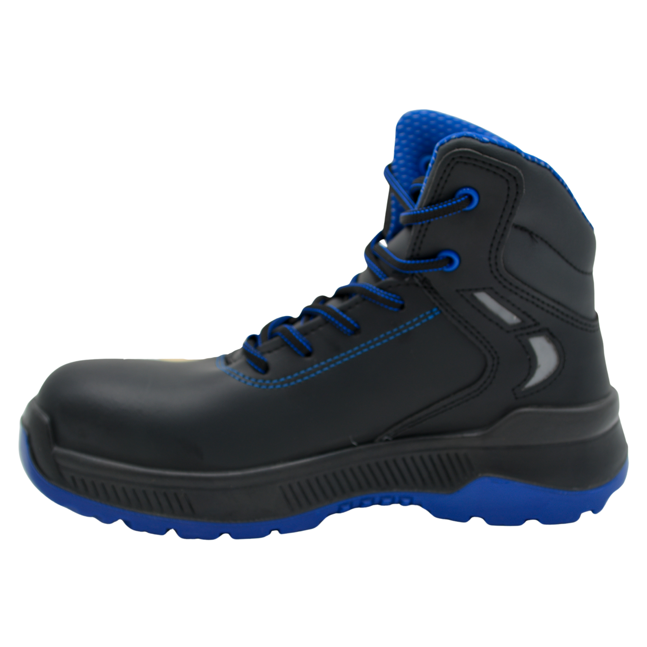 La puntera de poliamida, ligera y dieléctrica, ofrece protección contra impacto y compresión sin añadir peso metálico. Su suela y entresuela de PU antiestático superflex garantizan disipación ESD, absorción de impactos y excelente adherencia en superficies húmedas o aceitosas.